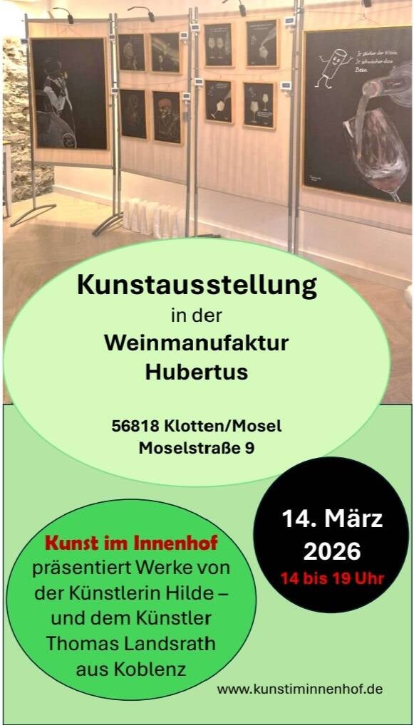 Bleiben Sie auf dem Laufenden mit den neuesten Nachrichten und Veranstaltungen von Kunst im Innenhof in Koblenz Moselweiss. Hier finden Sie alle Informationen zu unseren Ausstellungen, Künstlern und mehr.